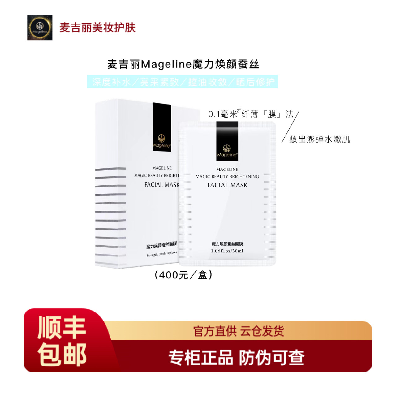 Mageline麦吉丽魔力焕颜蚕丝面膜保湿补水嫩肤修护提亮紧致贴肤