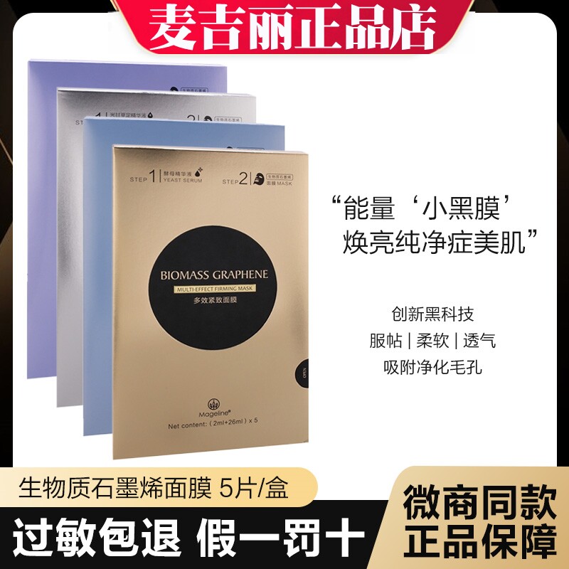 麦吉丽石墨烯面膜能量小黑膜5片装 补水紧致亮白嫩肤舒缓修护蚕丝