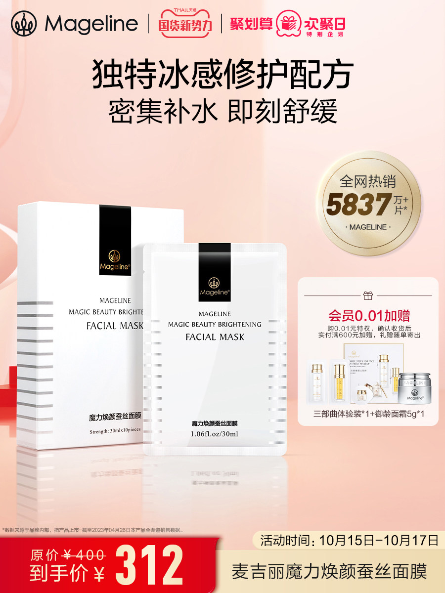 麦吉丽Mageline魔力焕颜蚕丝面膜保湿补水晒后修复嫩肤提亮正品