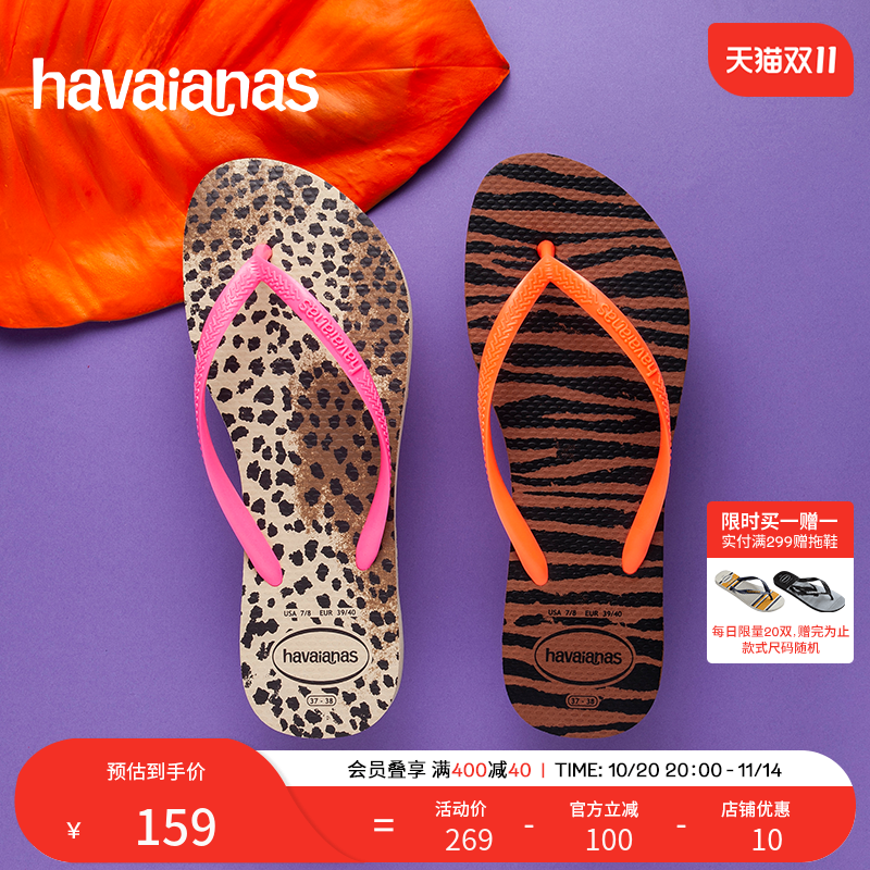 Havaianas哈唯纳Animals豹纹人字拖女夹脚平底鞋夏海边外穿凉拖鞋