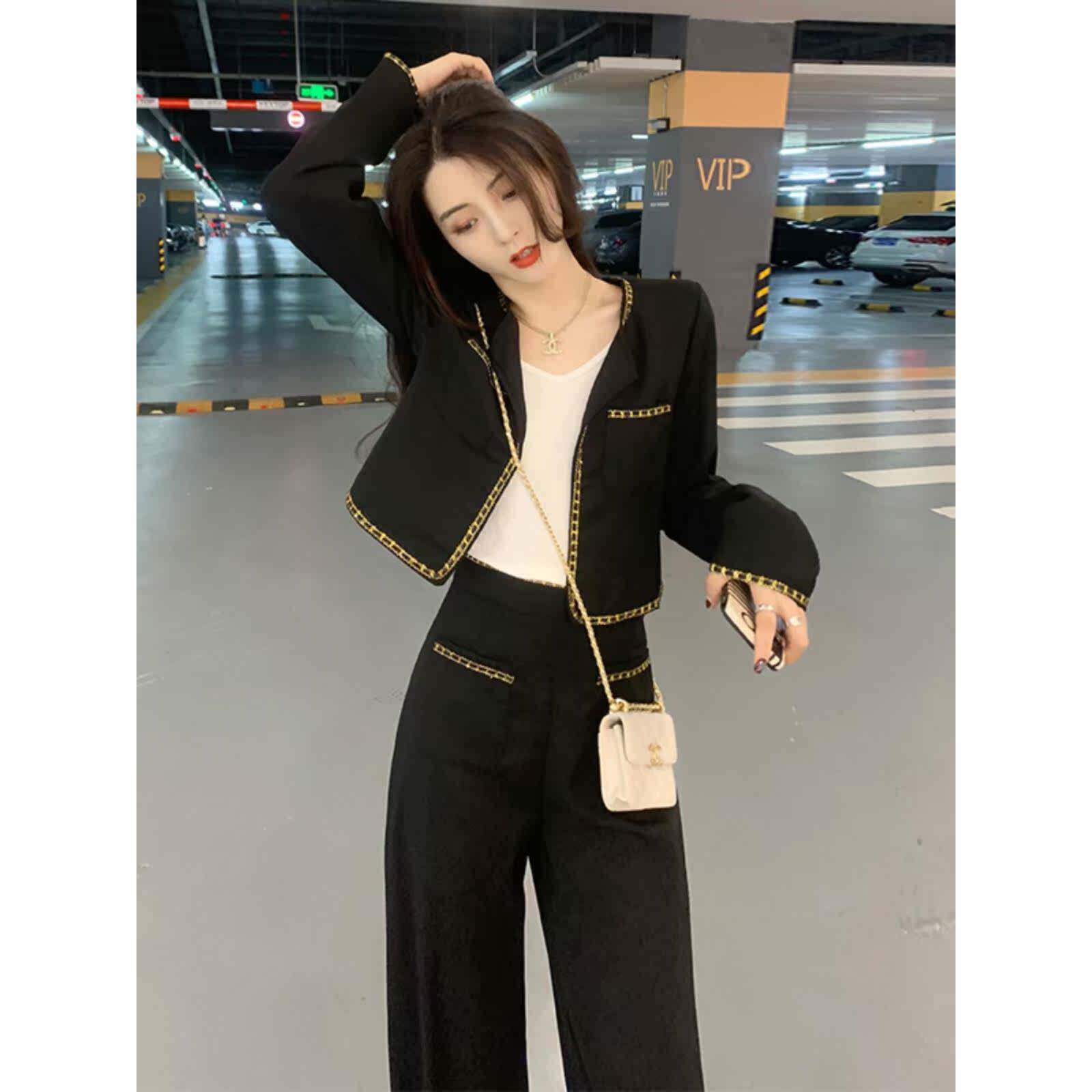 网红爆款时尚小香风套装女秋季新款气质名媛短外套+阔腿裤两件套