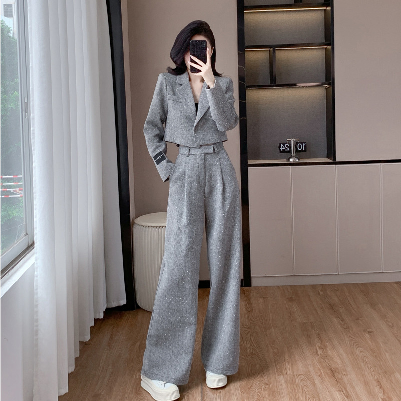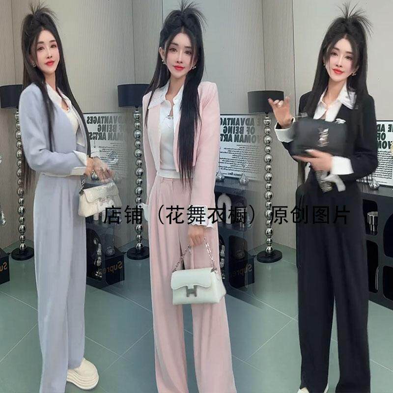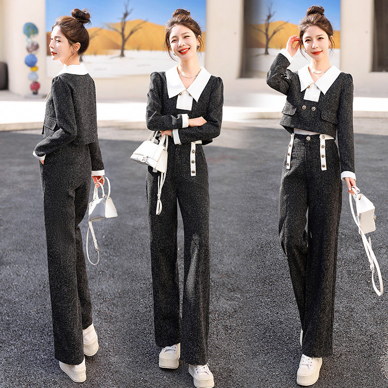 韩国2025秋新款小香风时尚阔腿裤套装女气质名媛外套西装裤两件套