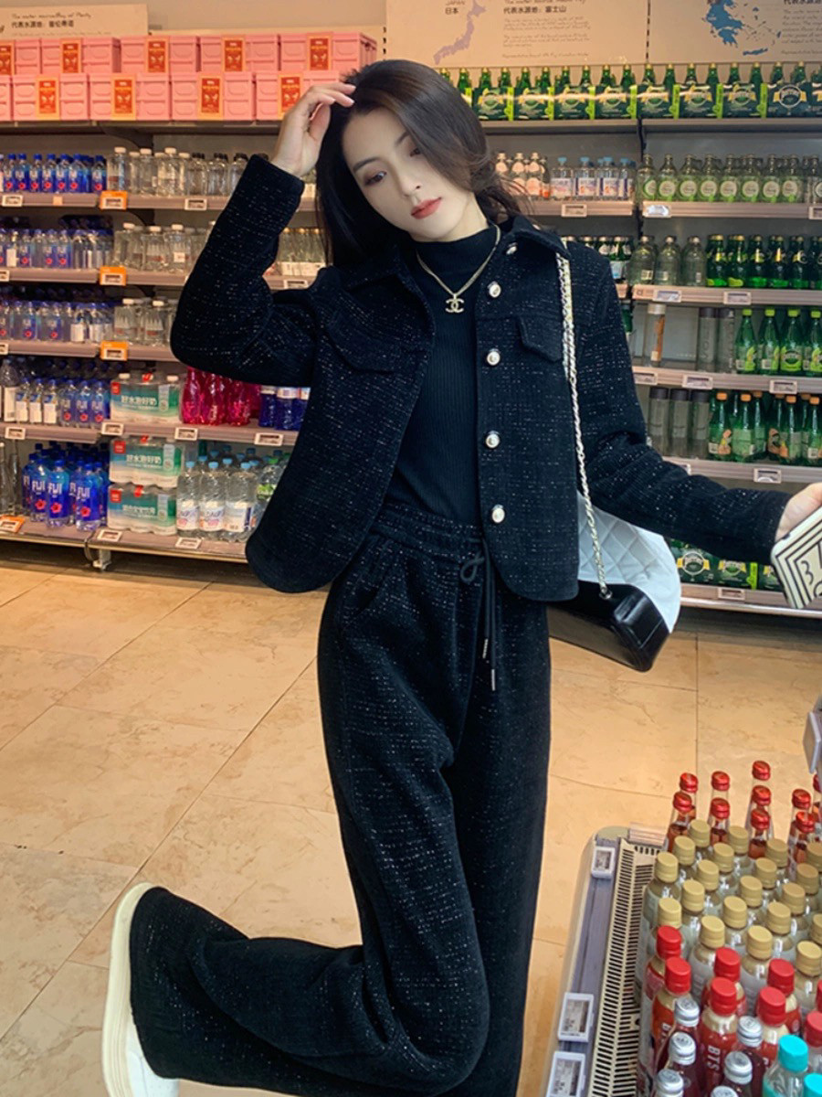 气质名媛小香风职业套装女2025秋冬新款高级感短款外套阔腿裤长裤