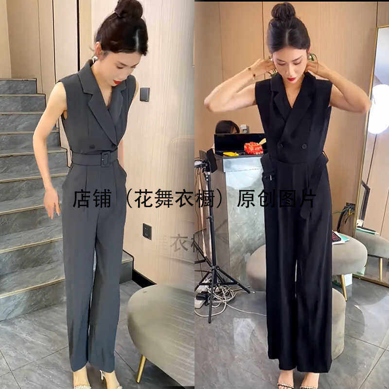 气质名媛小香风个性西服领无袖阔腿裤连衣裤显瘦显高两件套装时髦