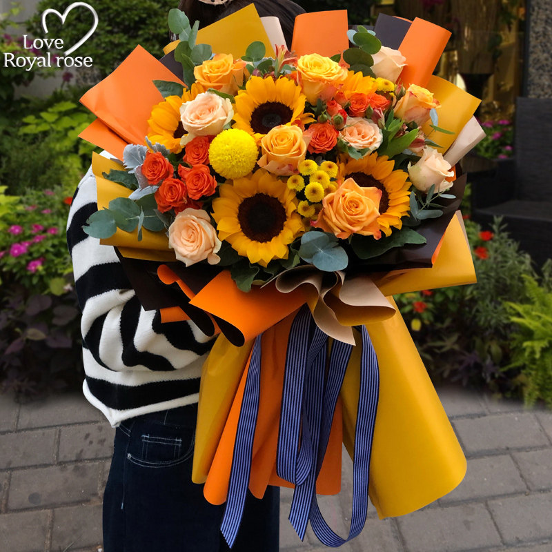 玫瑰花向日葵花束全国同城配送女友生日商务广州南京杭州鲜花速递