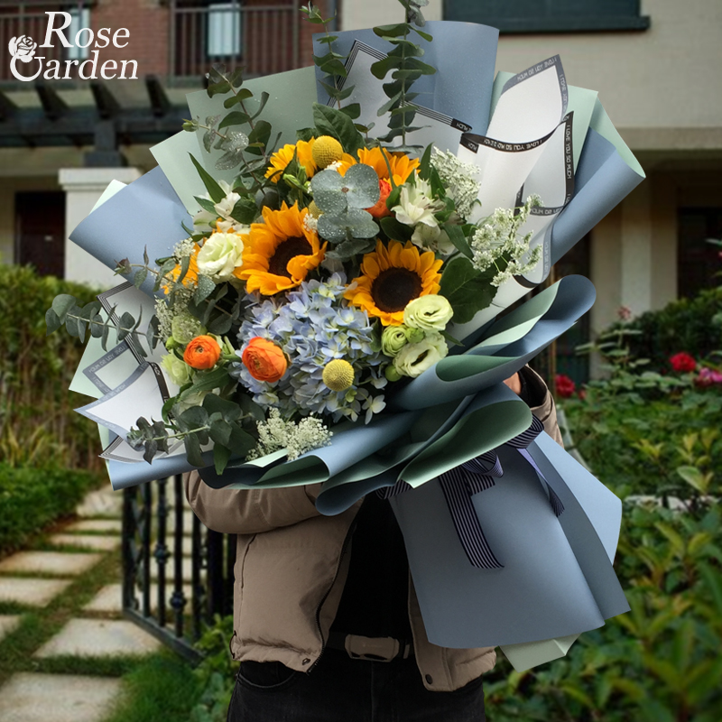 杭州鲜花速递同城向日葵玫瑰绣球混搭花束男士生日订花店送花上门