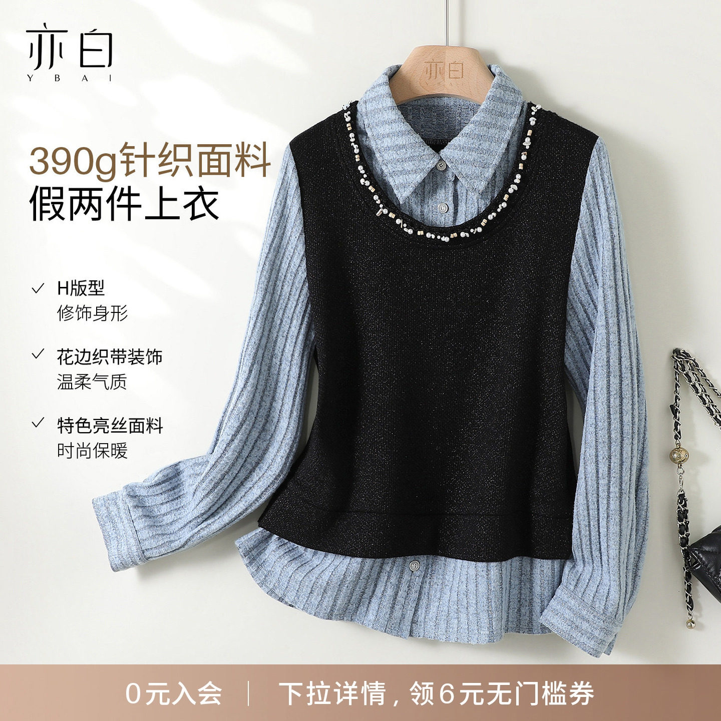 - 假两件针织衫女