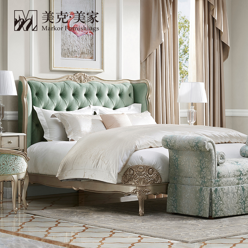 美克美家维也纳一米八床床头柜法式洛可可艺术卧室床淡绿色双人床