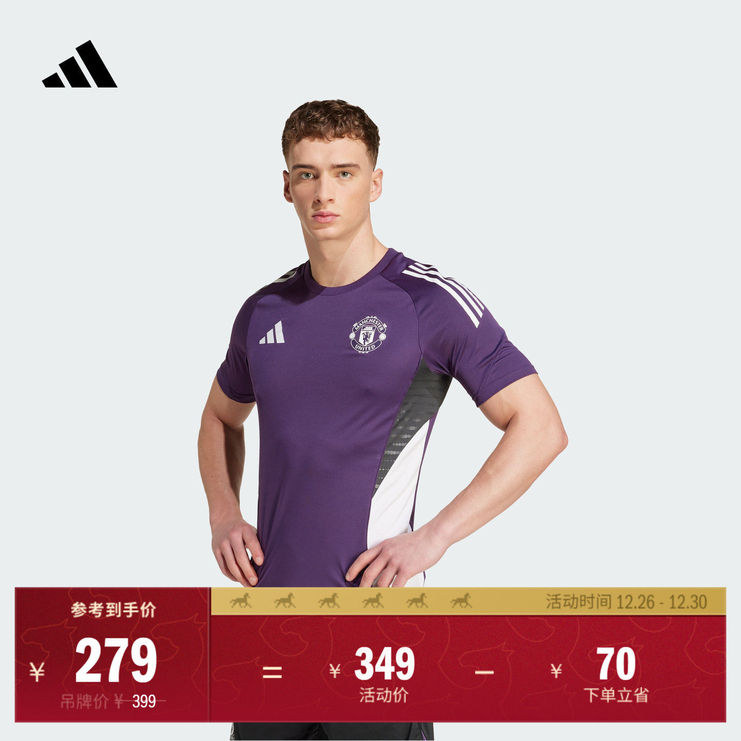 曼联速干足球训练运动短袖球衣男装夏季adidas阿迪达斯官方