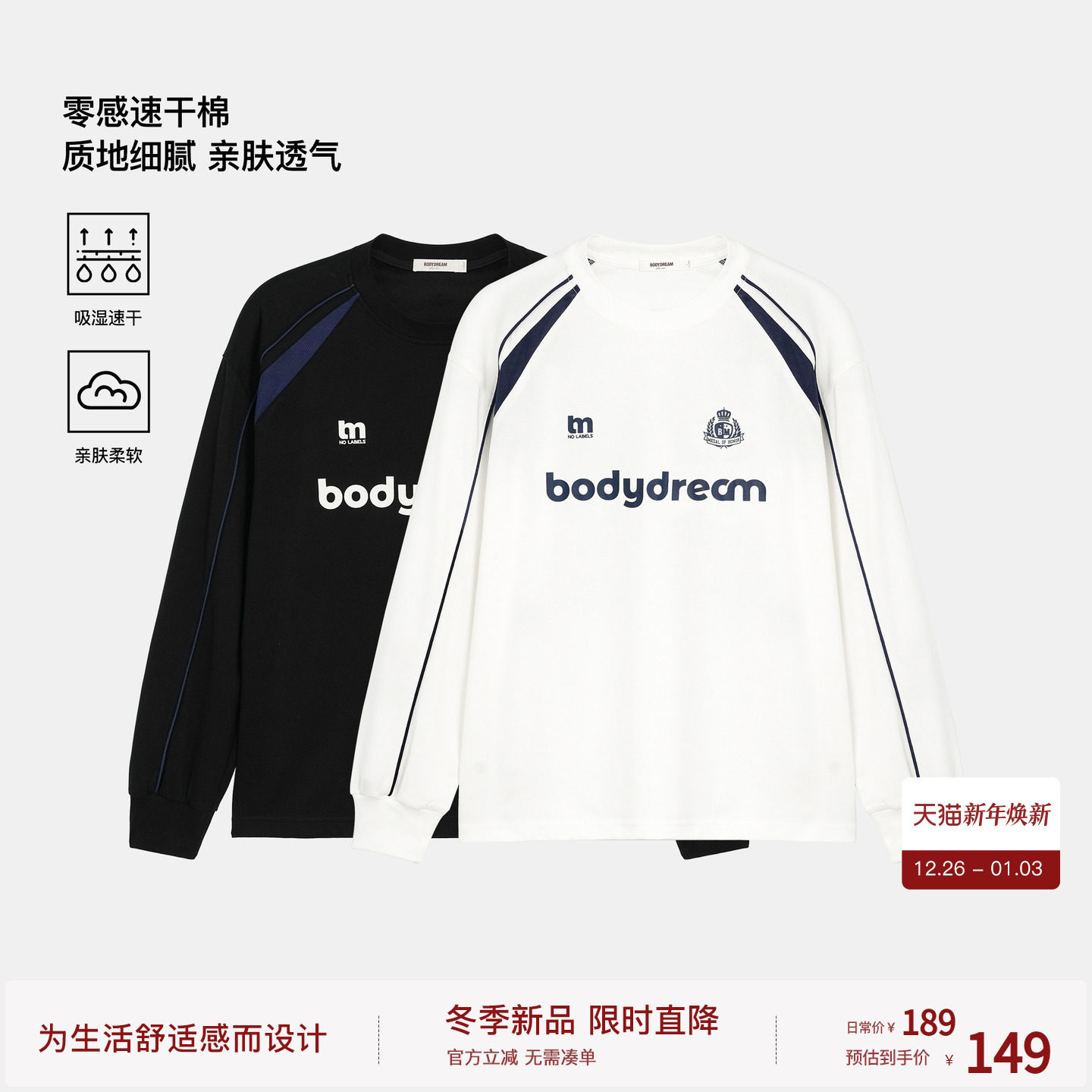 【随时上场】BODYDREAM运动训练足球服男速干衣斯波蒂奇克长袖T恤