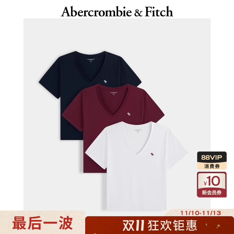 AF经典小麋鹿图案女装25秋季新款3件装棉质V领短袖T恤139-6063