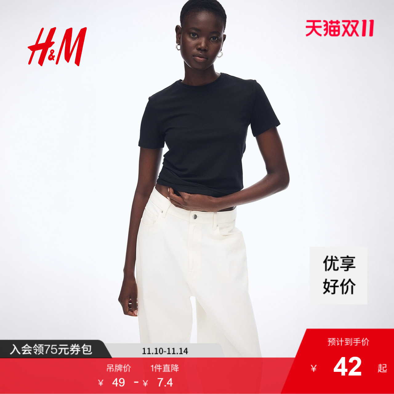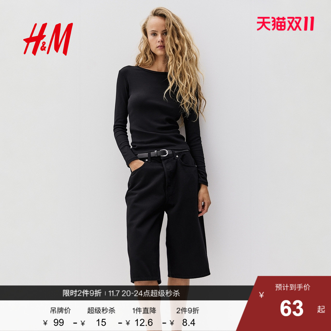 HM女装T恤2025秋季新款时尚休闲合身棉质打底长袖圆领上衣1264835