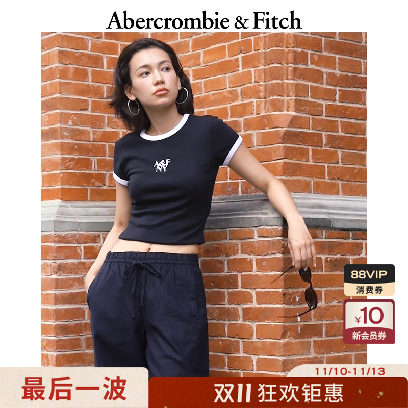 AF女装25秋新款美式复古棉质LOGO修身圆领套头短袖T恤185-5058