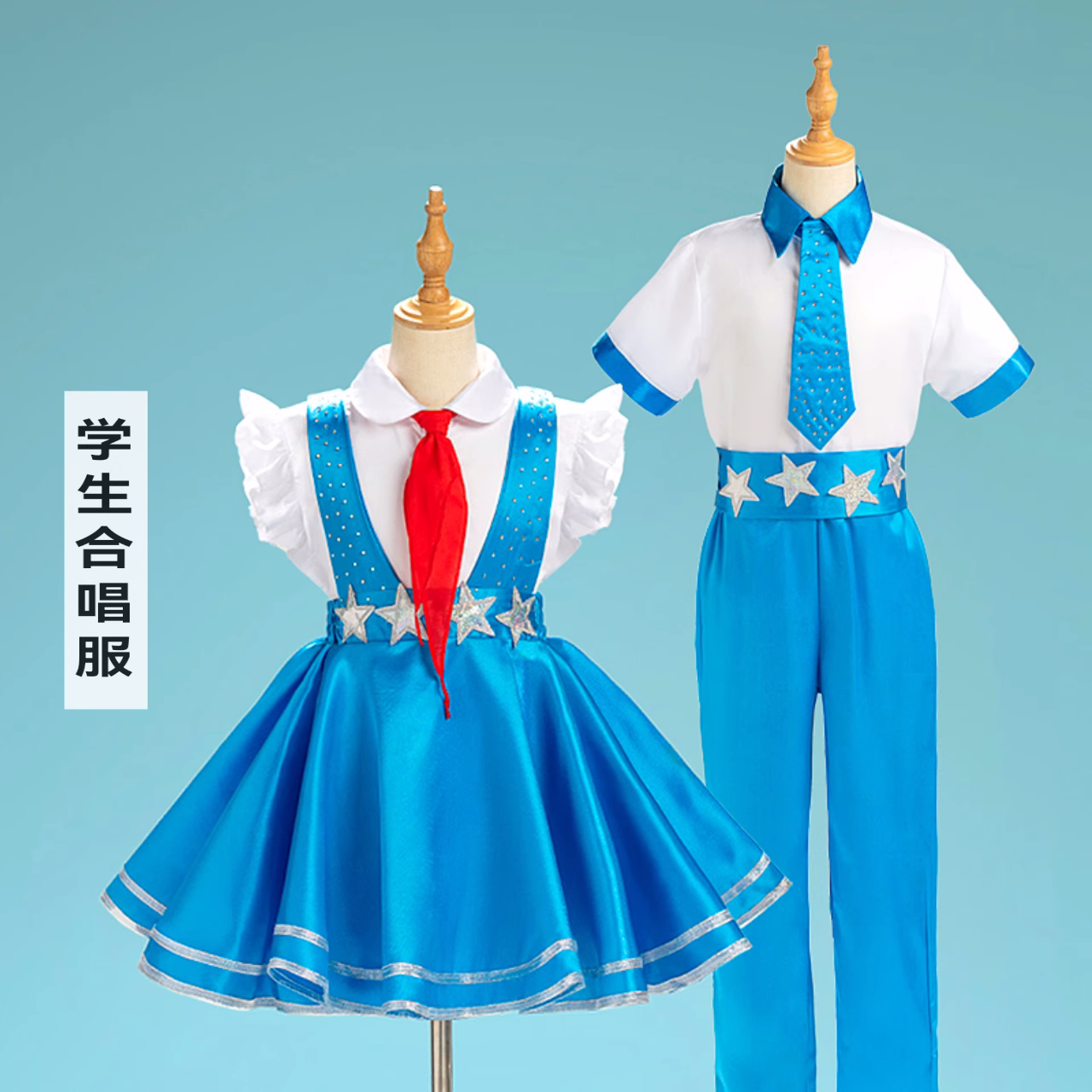 元旦儿童合唱演出服小学生男女主持礼服班服套装朗诵比赛表演服装