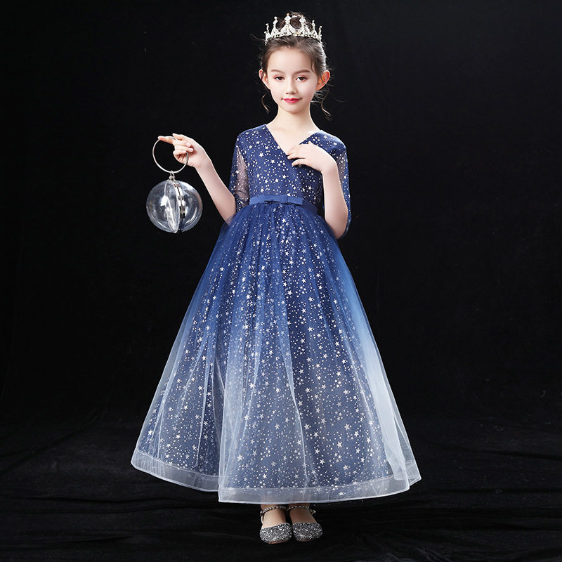 儿童礼服中大童钢琴演出服女童中袖节目主持礼服小女孩高端公主裙