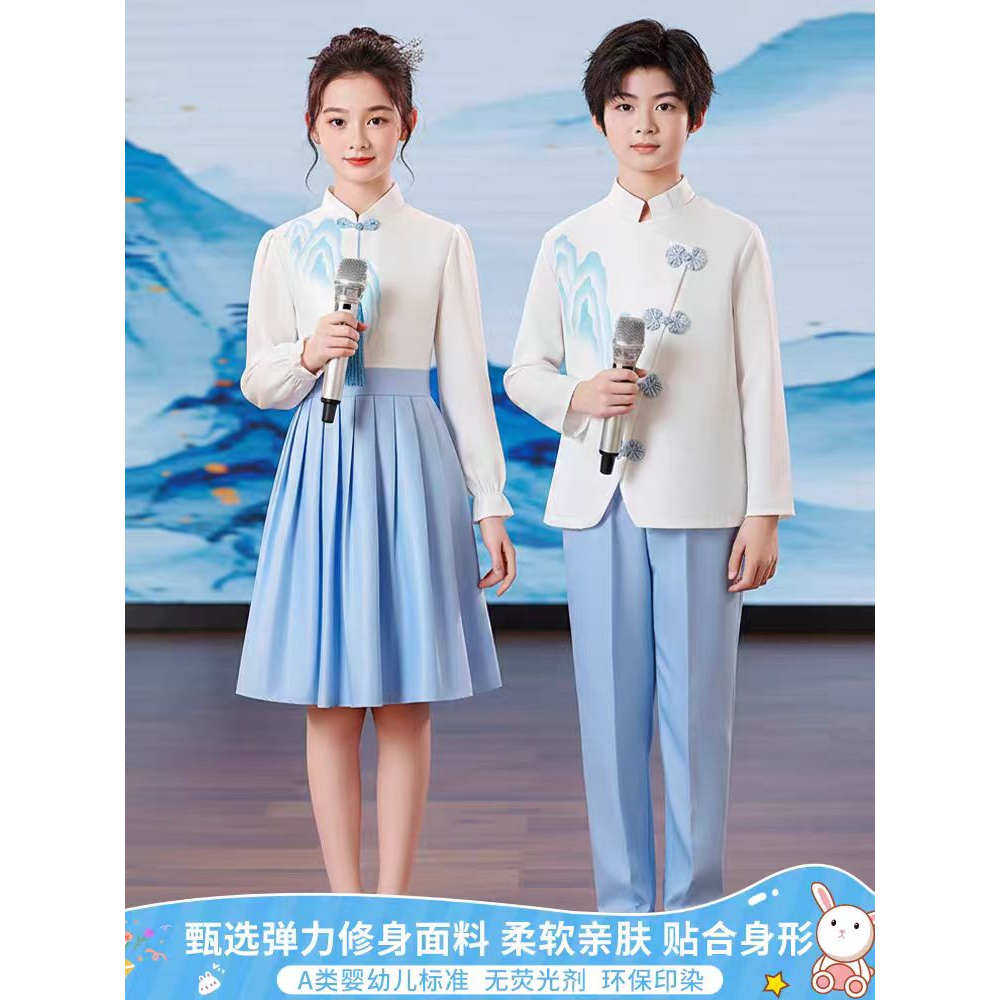 儿童合唱演出服初中小学生朗诵演讲比赛表演服男女中国风主持礼服