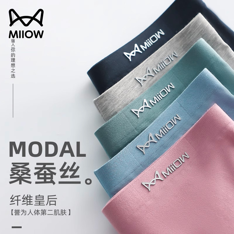 猫人桑蚕丝裆男士内裤健康抑菌夏季男生款莫代尔平角内裤男士四角