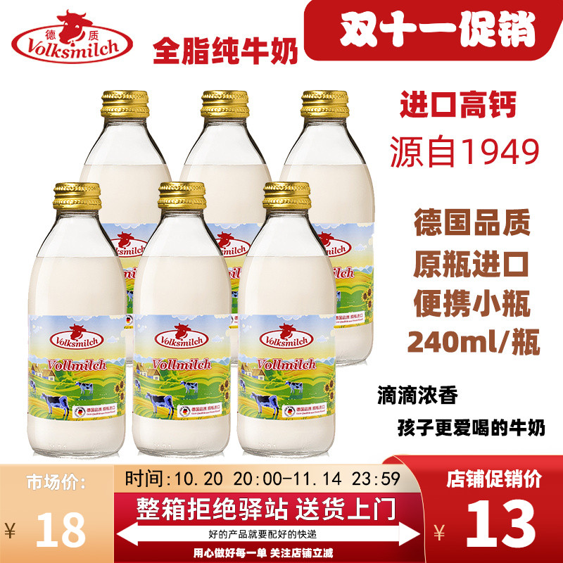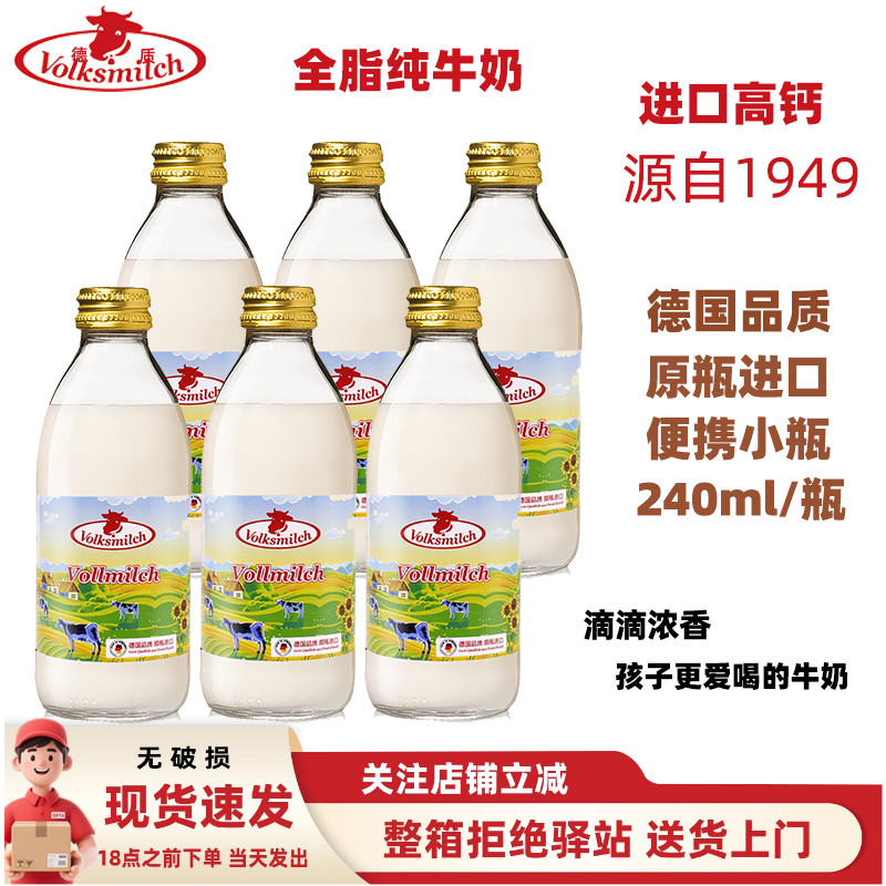 【240ml】德质德国进口全脂牛奶高钙纯牛奶装小瓶便携儿童学生奶