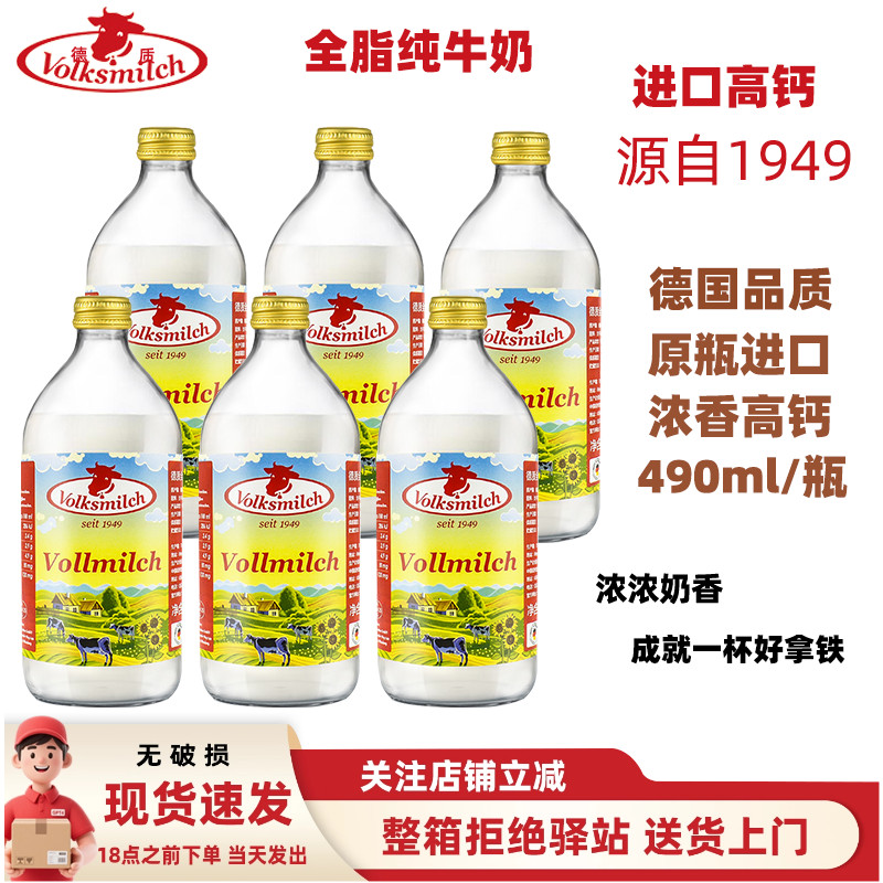 【490ml】德质德国进口全脂牛奶高钙纯牛奶儿童学生奶咖啡拿铁