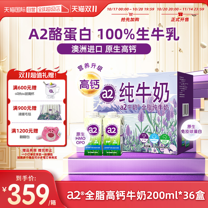 【自营】a2纯牛奶澳洲进口全脂牛奶A2酪蛋白水奶礼盒200ml*36盒