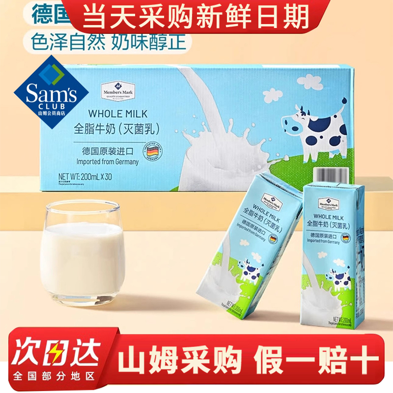 山姆超市德国进口全脂牛奶灭菌乳纯牛奶200ml*30盒营养学生早餐奶