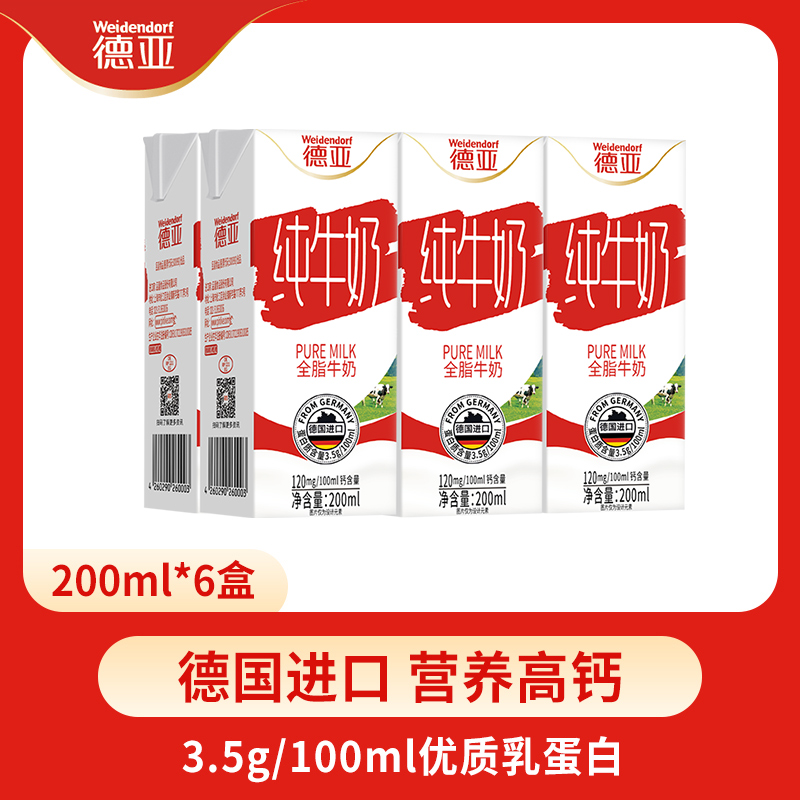 德亚德国进口全脂牛奶高钙早餐学生儿童牛奶中老年200ml*6盒