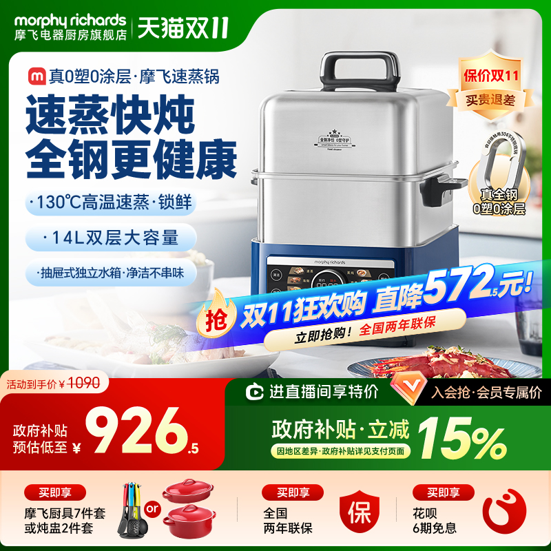 摩飞不锈钢电蒸锅多功能家用大容量蒸炖锅全自动预约电蒸烤箱1178
