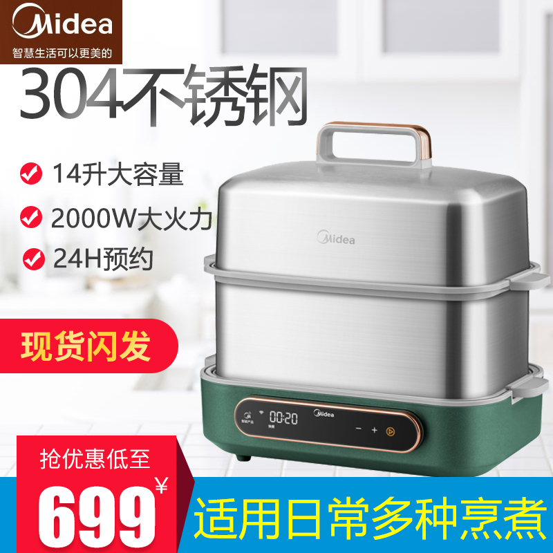 美的电蒸锅不锈钢家用蒸炖多功能一体锅可预约电蒸箱官方旗舰正品