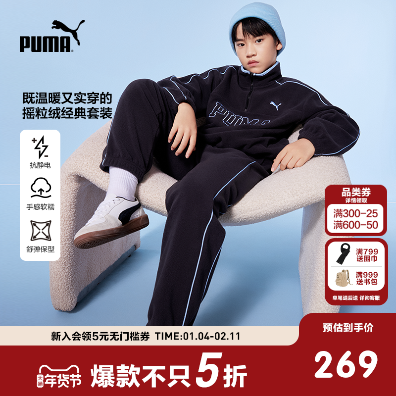 PUMA彪马童装2025新款儿童长袖套装男童女童拉链套装摇粒绒两件套