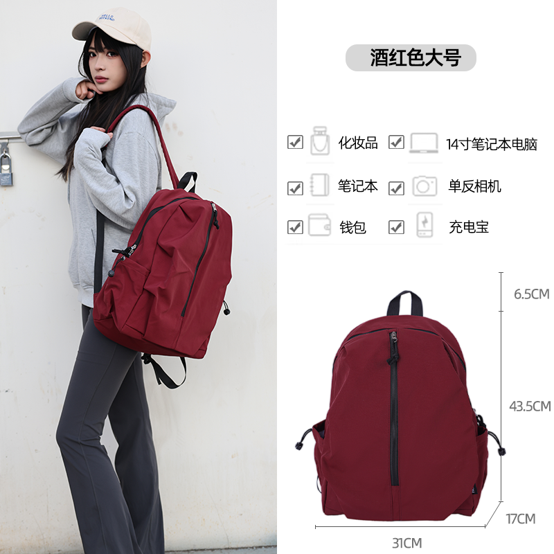 百搭大学生旅行双肩包休闲背包男士简约纯色初中高中生书包女防水