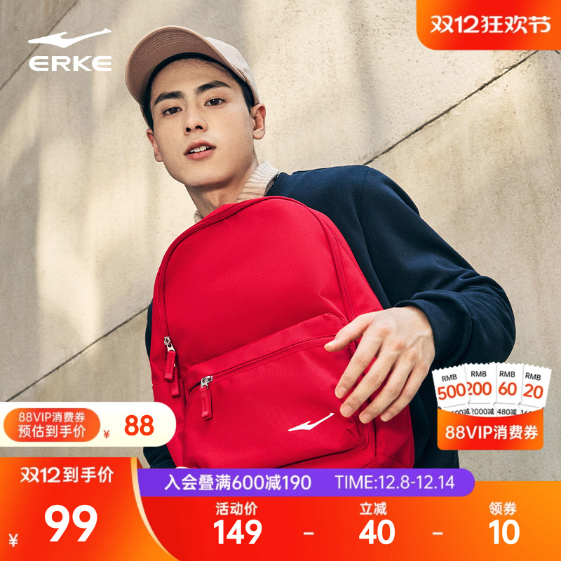 鸿星尔克双肩包男女同款简约学生书包初高中大学生多色大容量背包