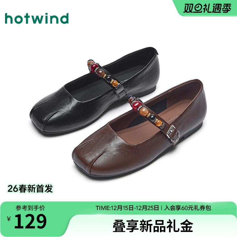 热风复古玛丽珍鞋2026年春季新款百搭平底单鞋法式黑色浅口女鞋子