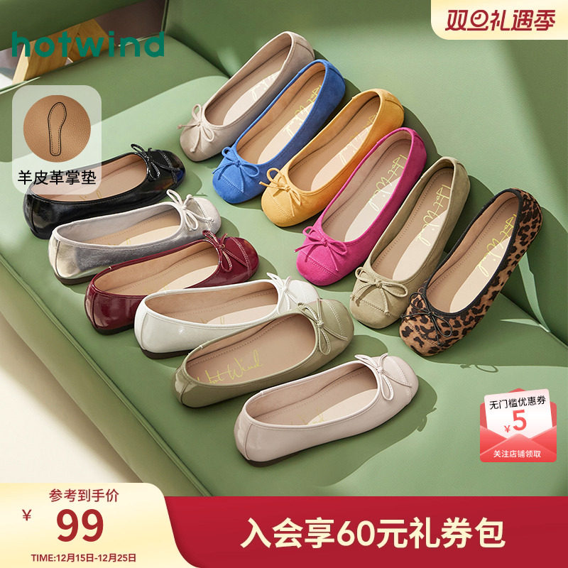 热风温柔浅口单鞋女2025年秋季新款蝴蝶结平底鞋子百搭休闲鞋女款