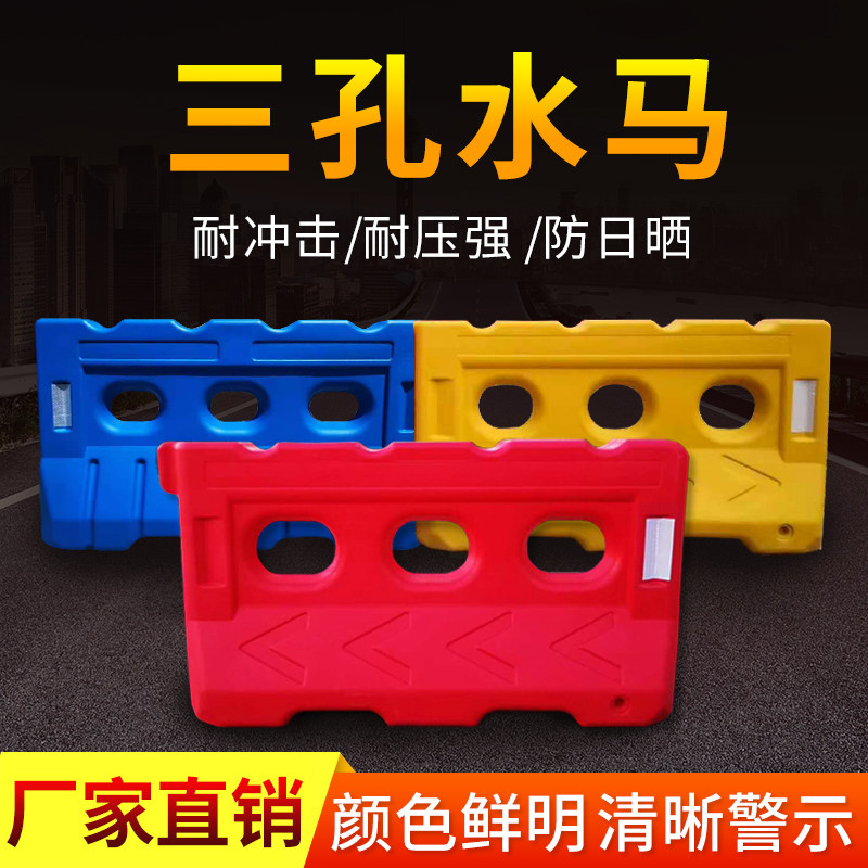 三孔水马注水围挡全新料滚组塑水马现合货围挡塑料水马吹塑隔离墩