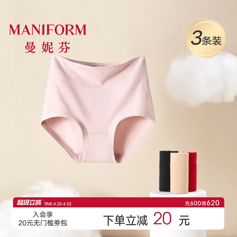 3条装曼妮芬内裤女生无痕透气纯棉抗菌裆高腰包臀低角裤大码底裤
