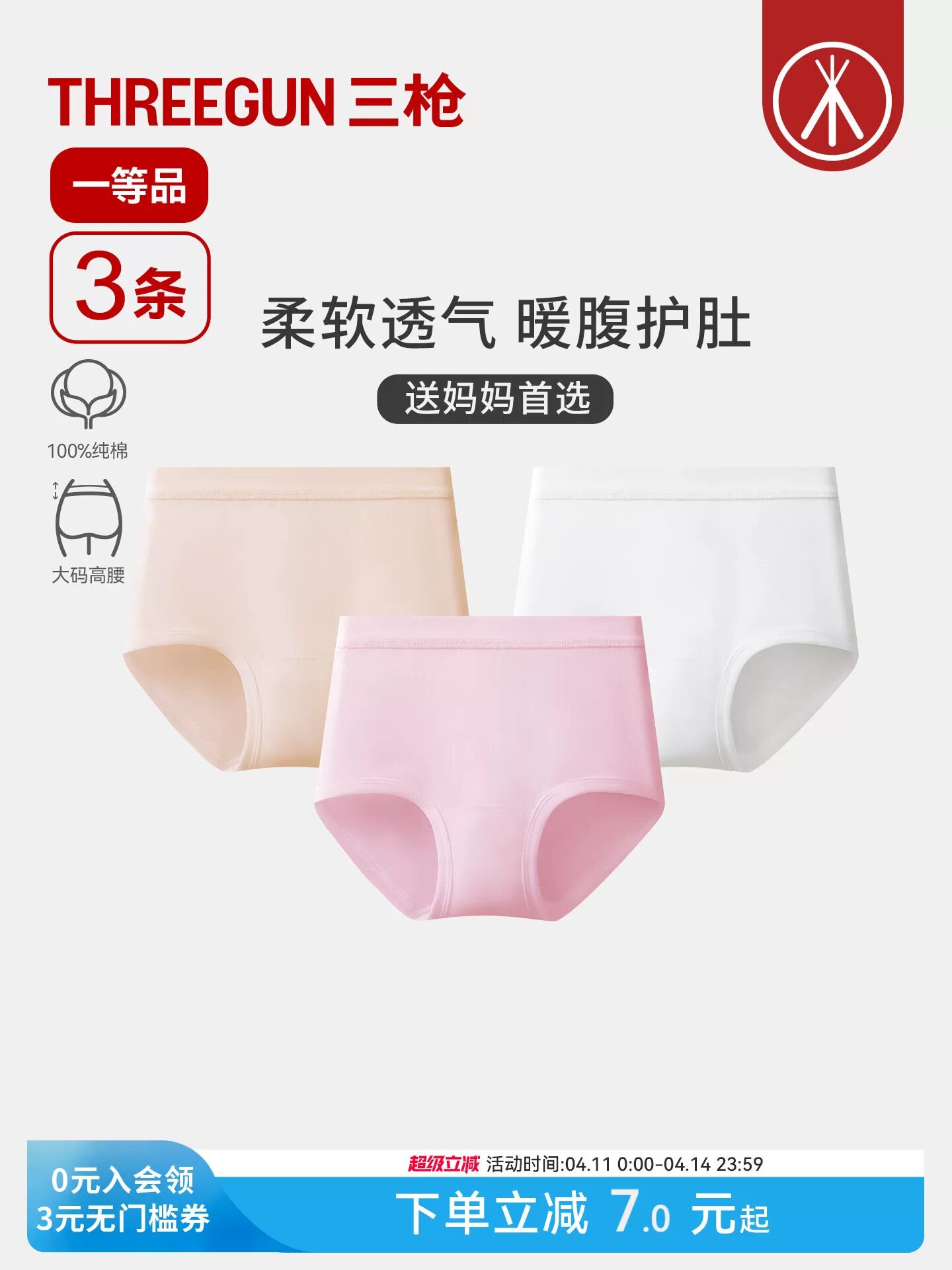 3条装三枪内裤女纯棉高腰棉质透气加大中老年宽松大码女士三角裤
