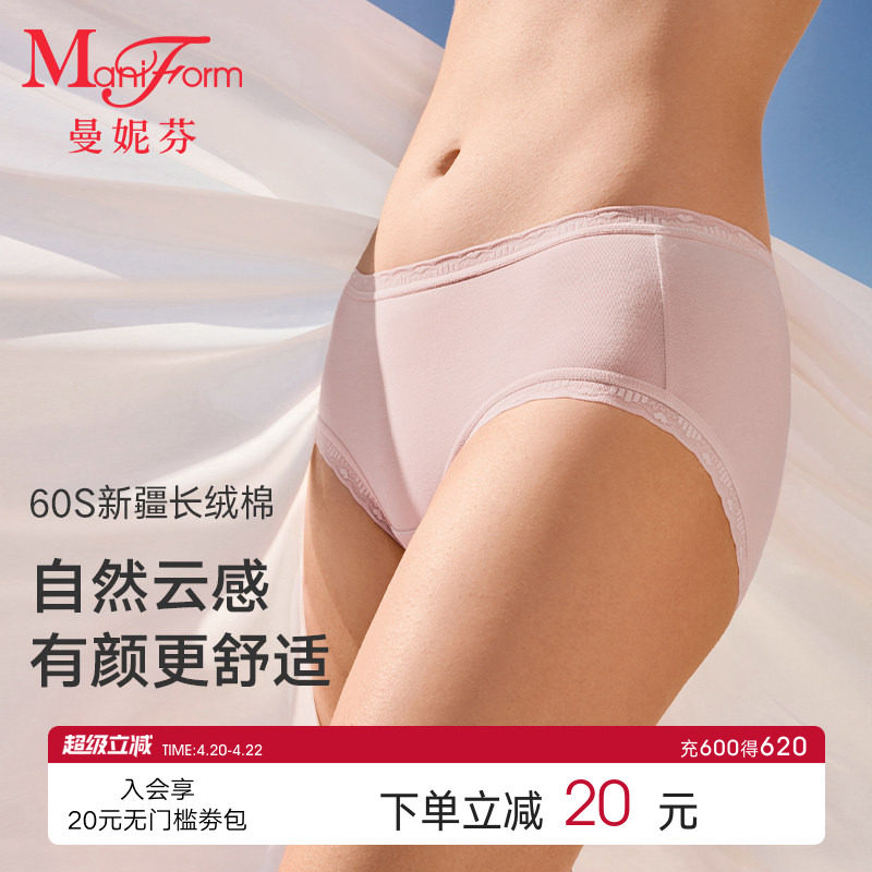 2条曼妮芬棉质中腰低角裤抗菌纯棉内裆高腰女士内裤舒适三角底裤