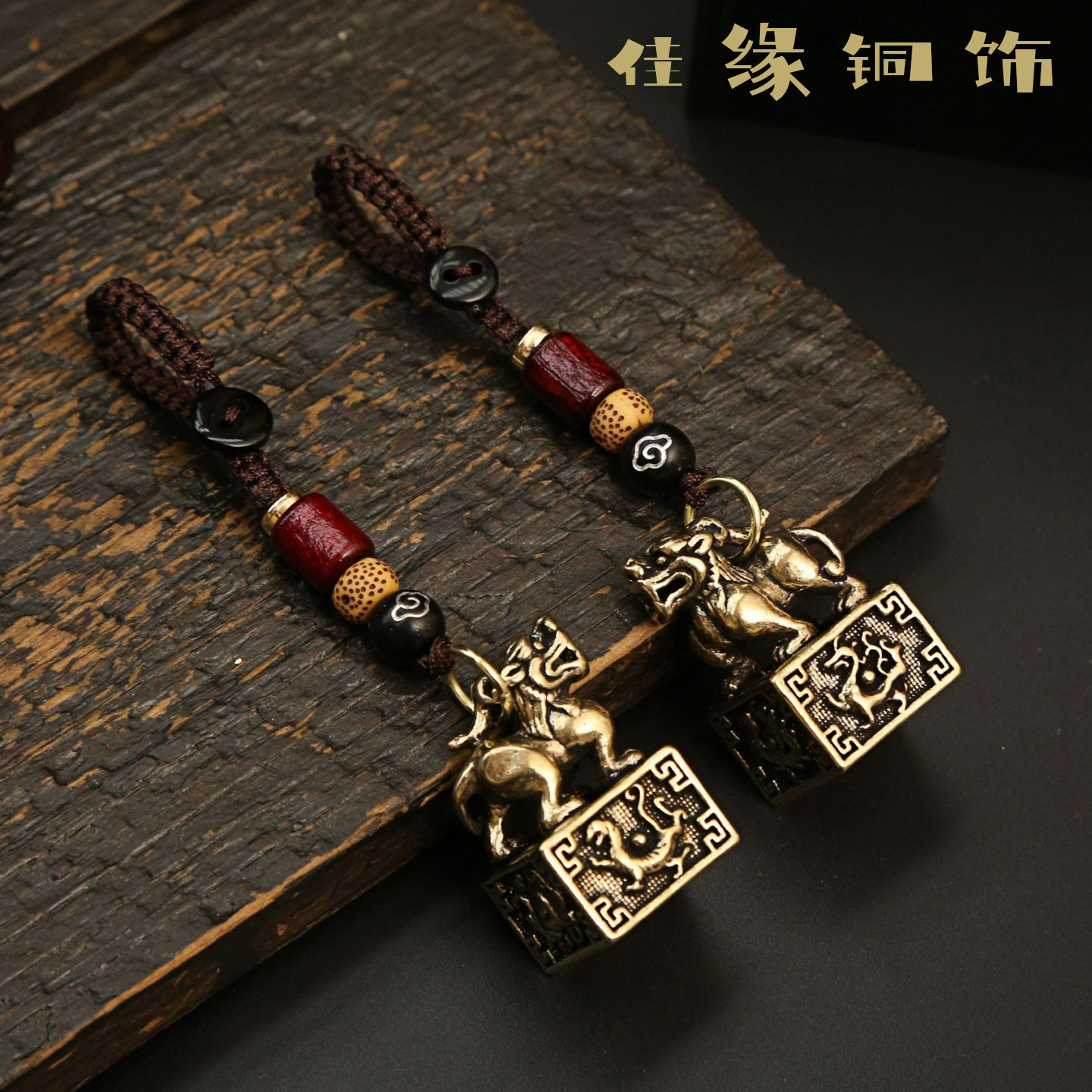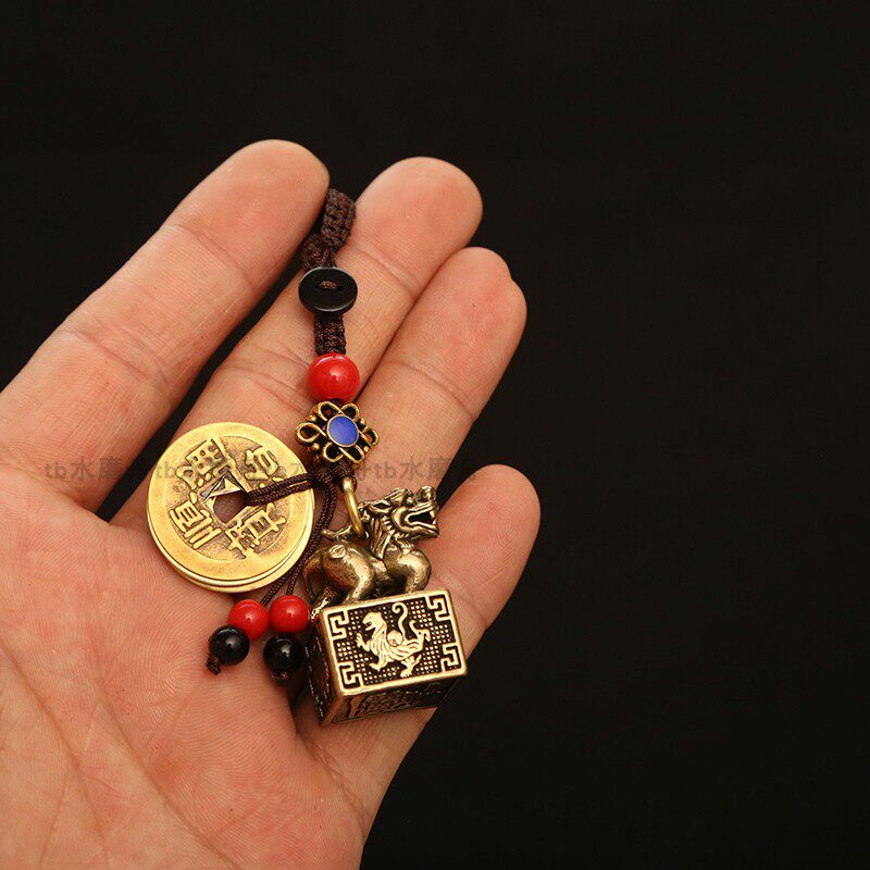 纯铜招财进宝麒麟印章黄铜印创意书包包挂件汽车钥匙扣钥匙链吊坠