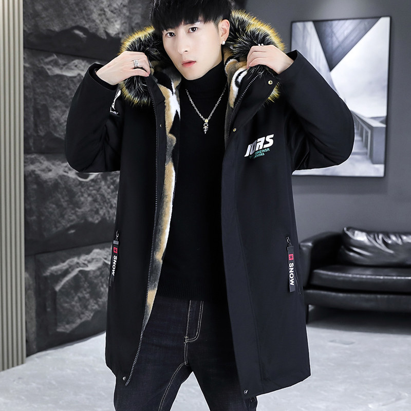 2025男士冬季棉衣中长款加绒加厚仿兔毛保暖青年学生棉服保暖外套
