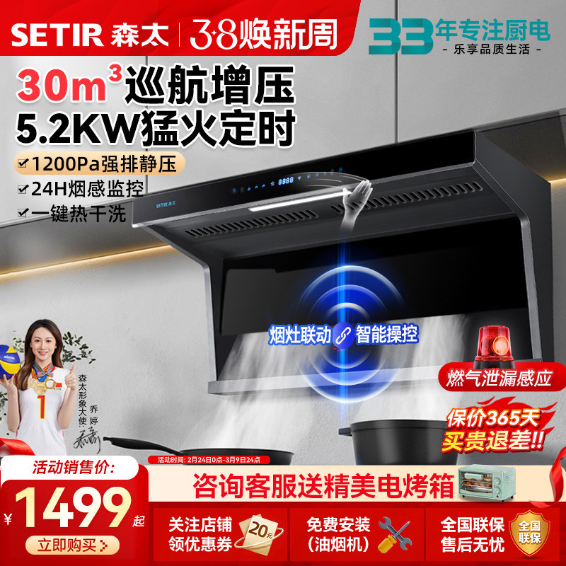 森太B530QL抽油烟机燃气灶套餐灶具套装组合大吸力烟灶消三件套