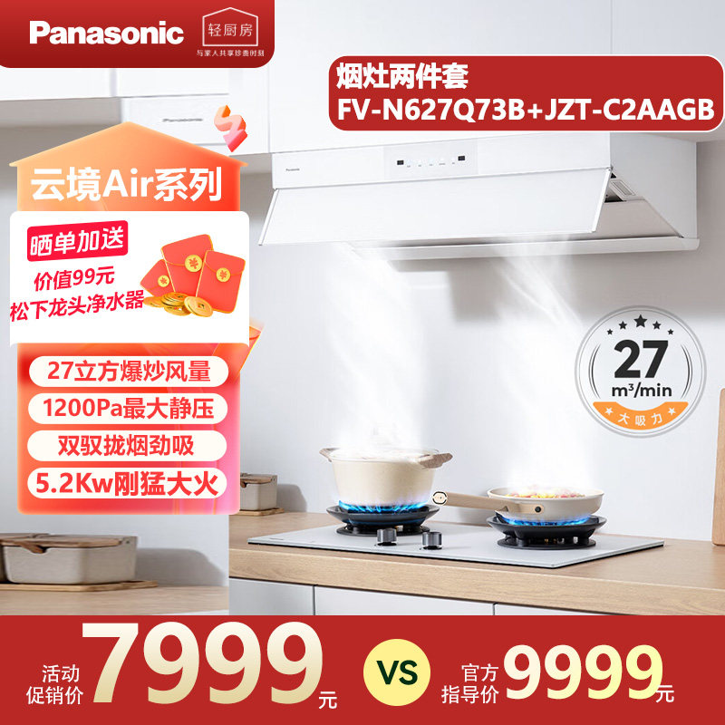 松下云境Air吸油烟机燃气灶具厨房烟灶套装组合N627Q73B+C2AAGB