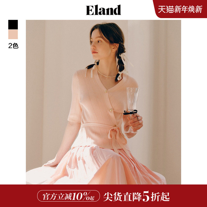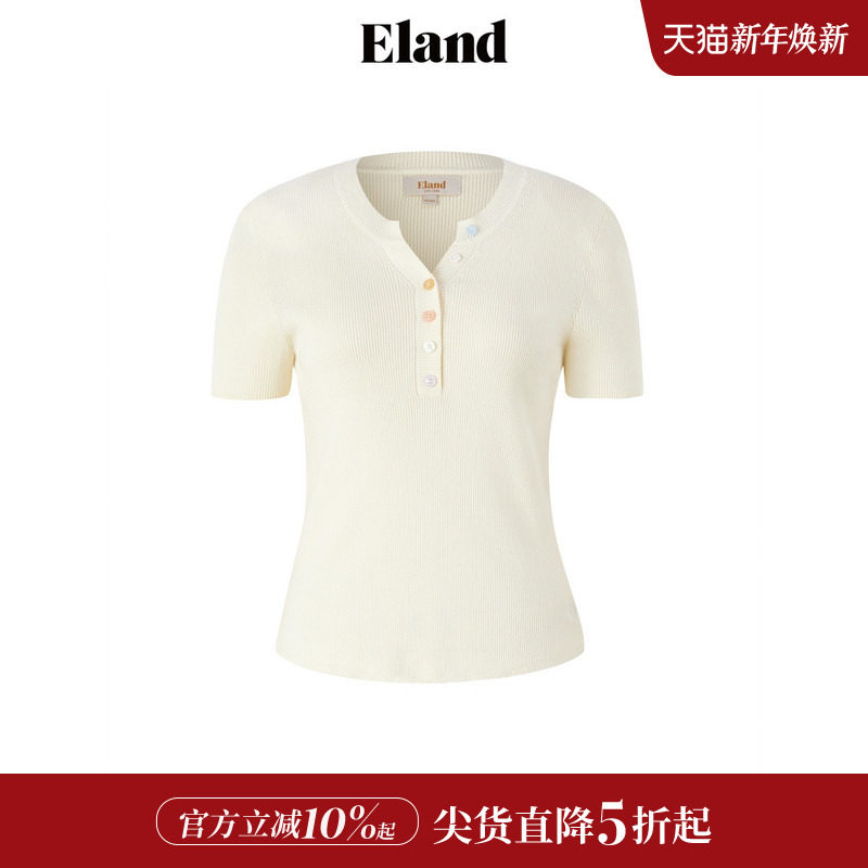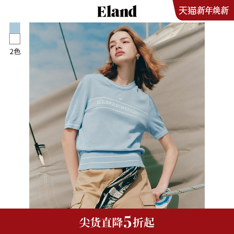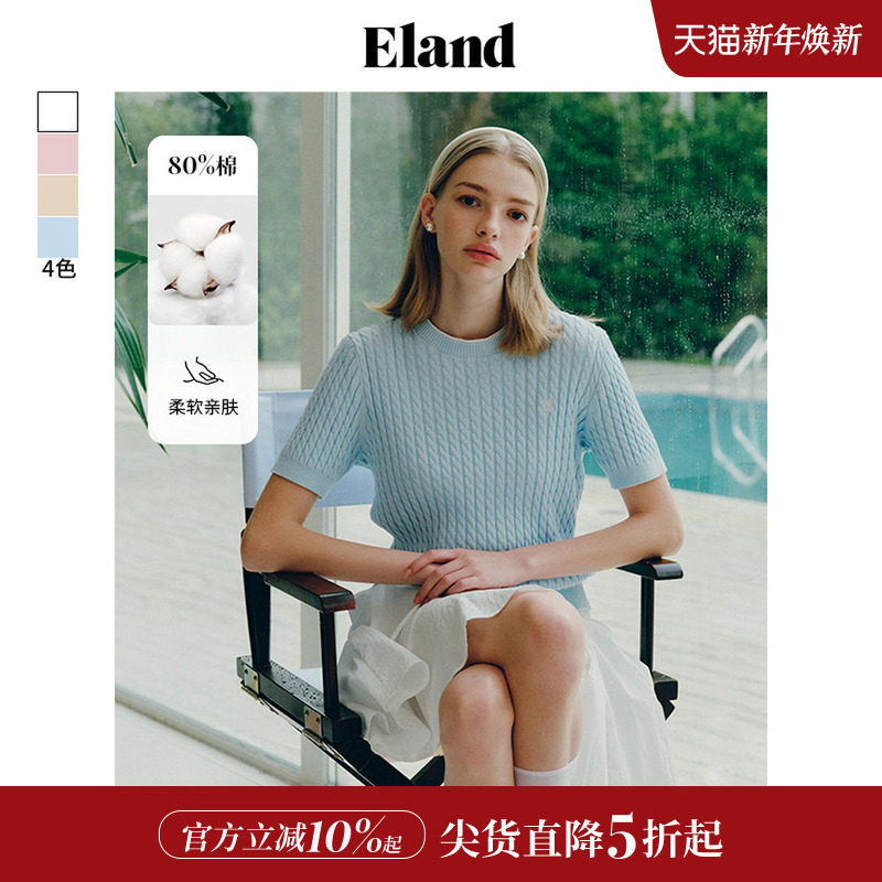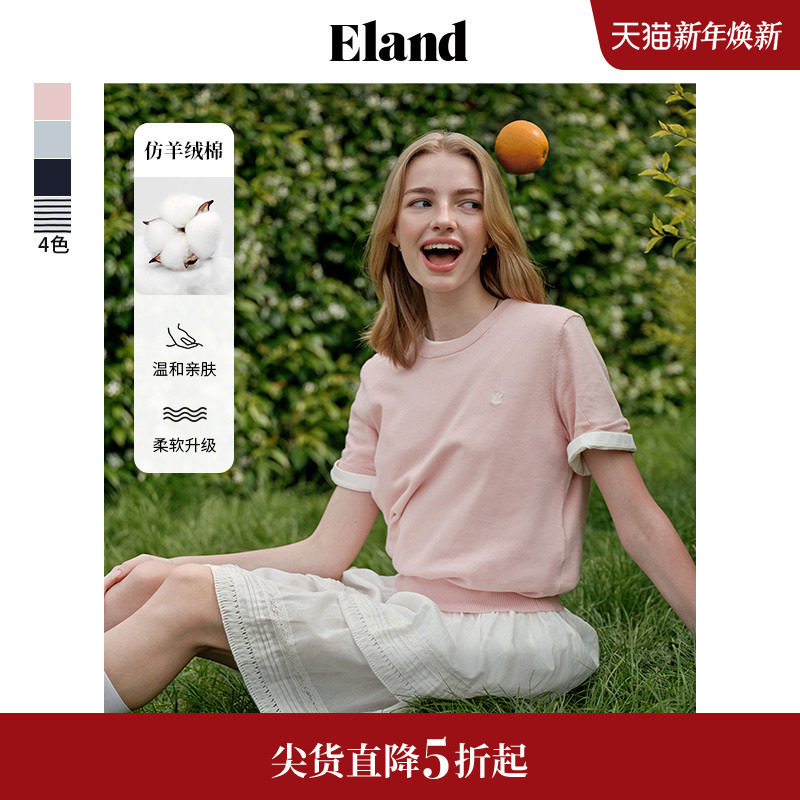 【棉棉冰】Eland衣恋毛衣女圆领棉感舒适短袖针织T恤夏季款