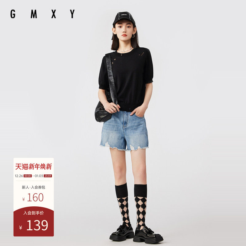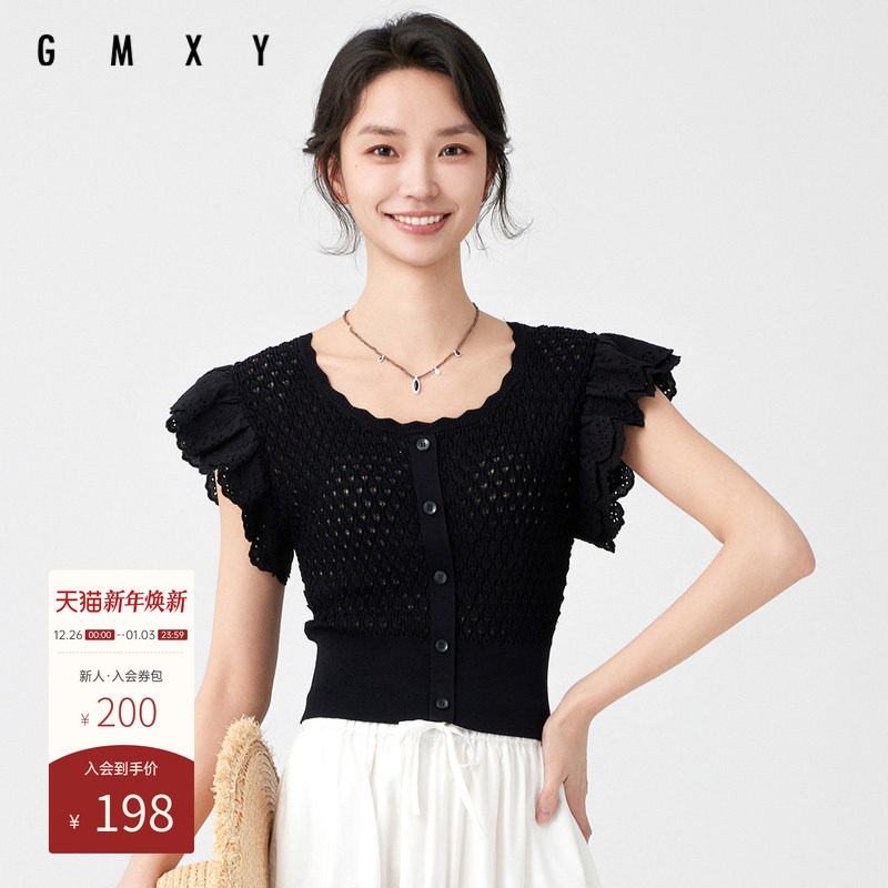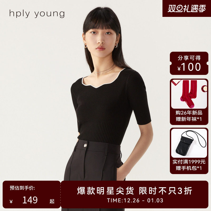 线上专享hply young夏季新款女舒适针织上衣钻石领设计感毛衫
