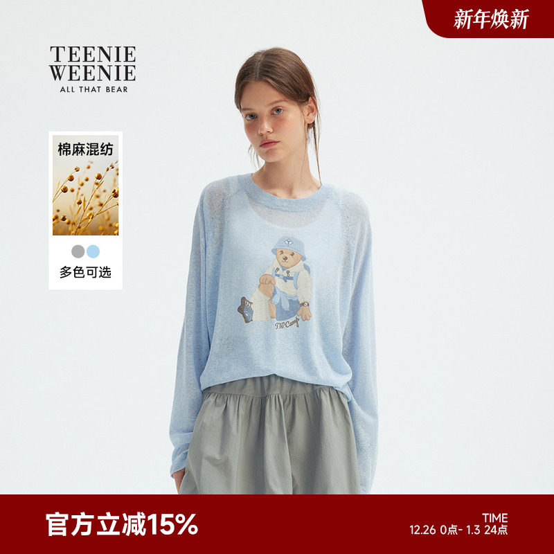 TeenieWeenie小熊女装毛衣2025夏季新款松弛慵懒风棉麻混纺两件套