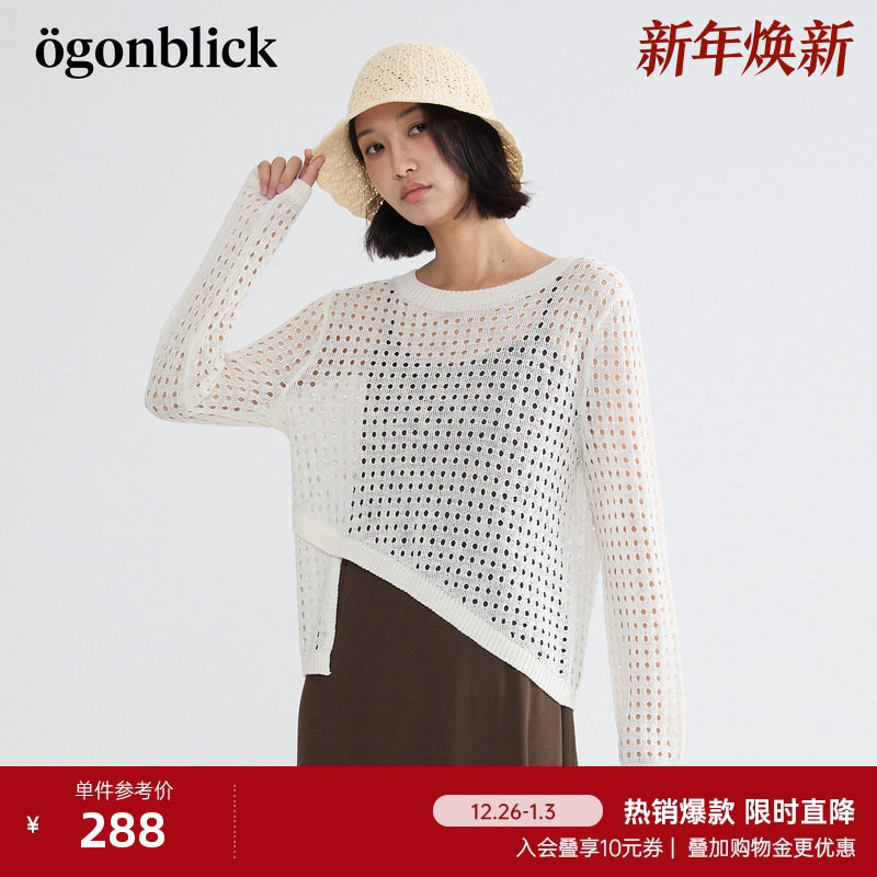 商场同款北欧时刻白色镂空毛衣罩衫女夏季新款百搭时髦针织衫上衣