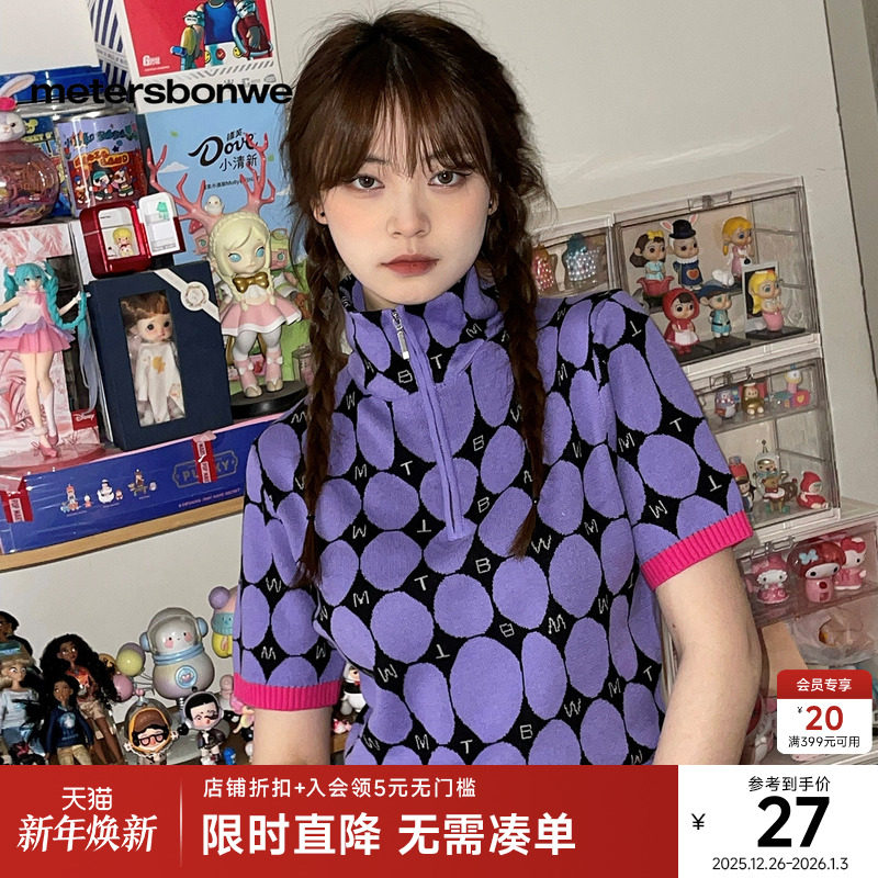 古木夕羊夏季POLO领条纹撞色套头毛衣女显瘦修身上衣GS430034012