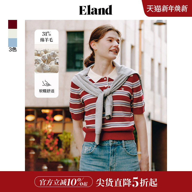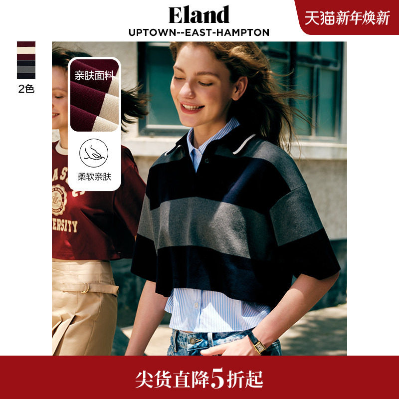 Eland衣恋T恤女清POLO短袖针织衫包容显瘦毛衣内搭夏季款