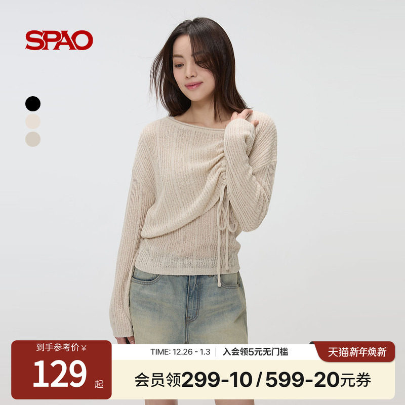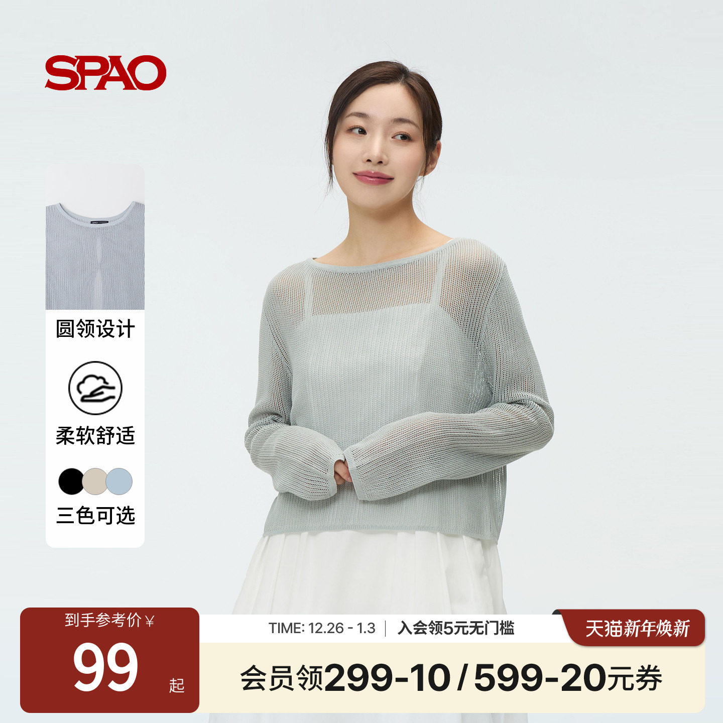 SPAO韩国同款2025年夏季新品女时尚潮流简约镂空透明罩衫长袖毛衣