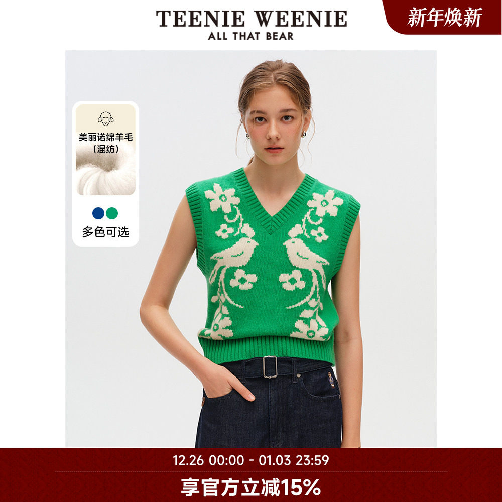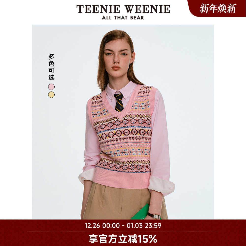 TeenieWeenie小熊奥莱针织T恤夏季新款复古嵌花V领毛衣背心上衣女