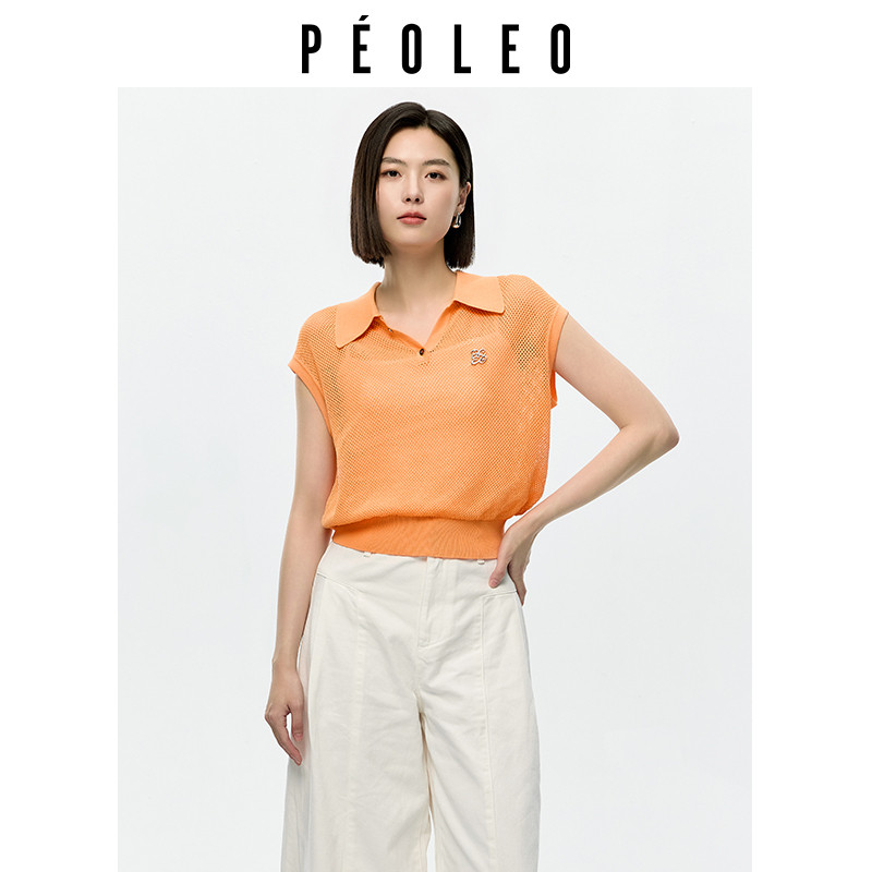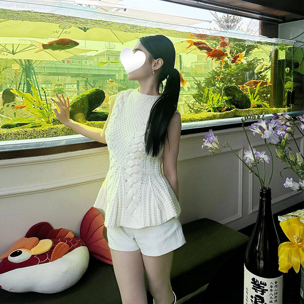 飘蕾无袖毛衣2025夏季新款翻领镂空透气百搭时尚独特气质女士上衣